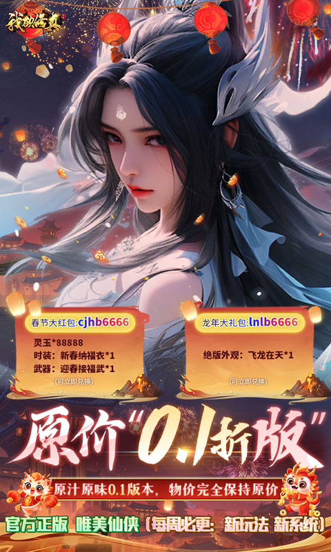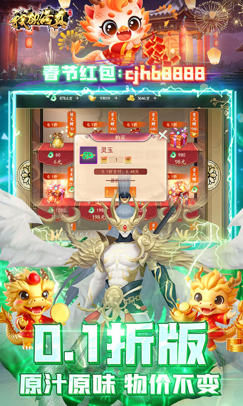 【策划承诺】游戏内所有充值通通0.1折,原汁原味0.1版本,物价完全保持原价,原几千元神藏套装仅需几十元