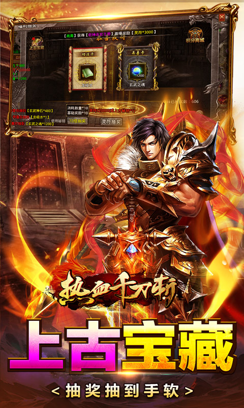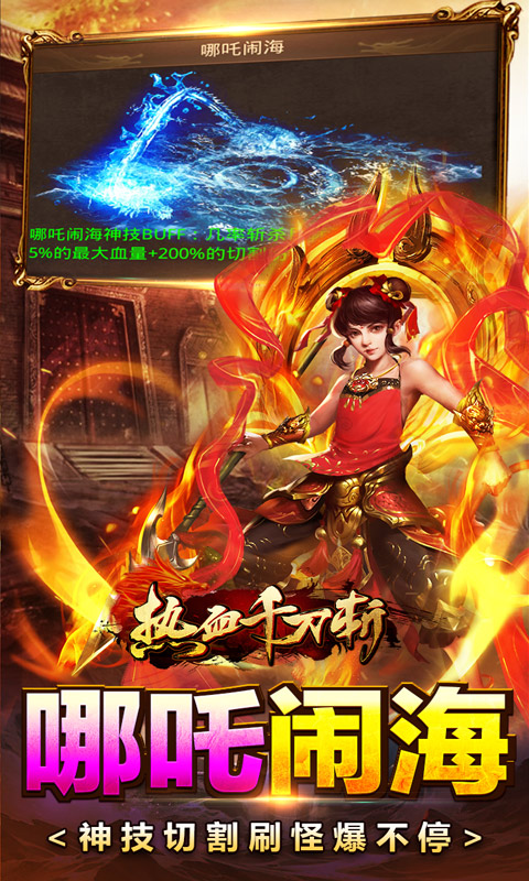 热血千刀斩(龙腾四海爽爆充)是一款让你肾上腺素狂飙的传奇手游!踏入这片广袤无垠的传奇大陆,你将化身战神,执掌神器,一刀在手,万夫莫敌!全服首爆千万灵符!全服首杀万元充值!助你驰骋四海,霸业等你来创!在这里,兄弟聚首,共赴沙城,热血PK,畅享前所未有的激战快感,成就你的不朽传奇!