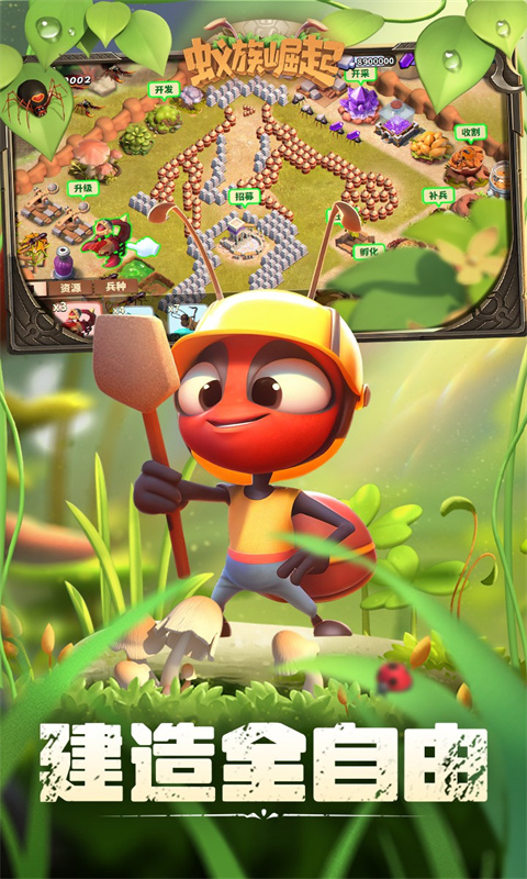 在《蚁族崛起(0.1折免费版)》你将作为蚁族统帅,建造你的专属蚂蚁王国。神机妙算的三国英雄、智勇双全的凯撒,还有数位出类拔萃的豪将,都等待你招募入队,成为蚁族中坚!通过资源囤积、城防修建、战力提升,将一方蚁穴壮大成为兵「蚁」强壮的王国城邦!与百万玩家结盟或是为敌,抵御强敌进攻,联手攻克城池,战无不胜,攻无不取,成为地下世界的霸主!