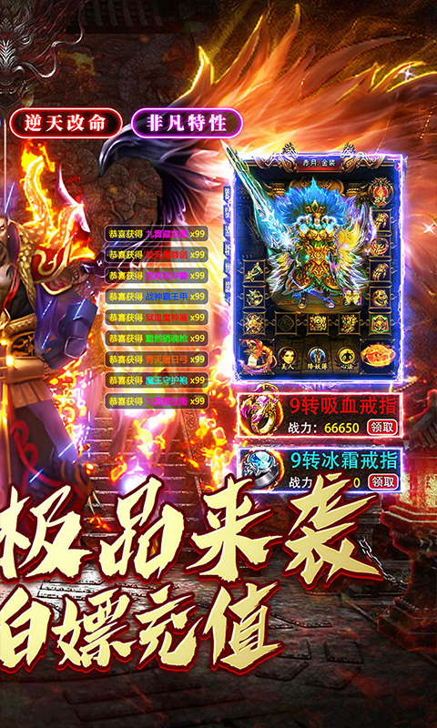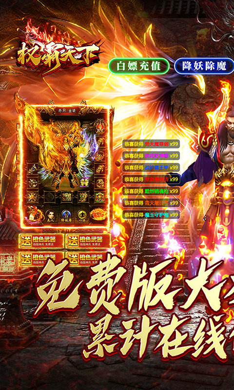 1、上线送爆率虎符,50元红包,刷怪神技,养成材料,助力轻松起步