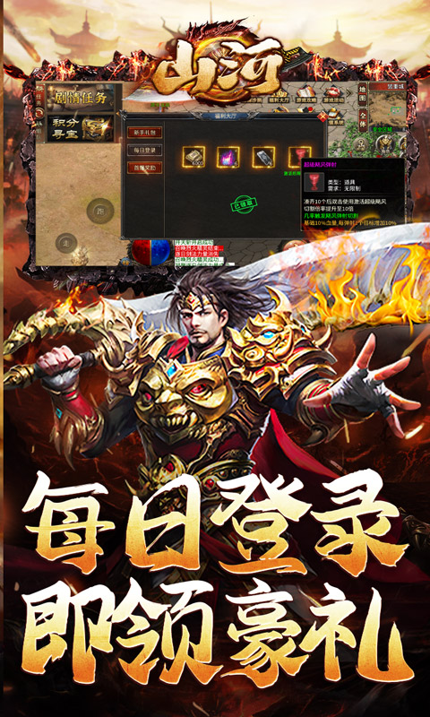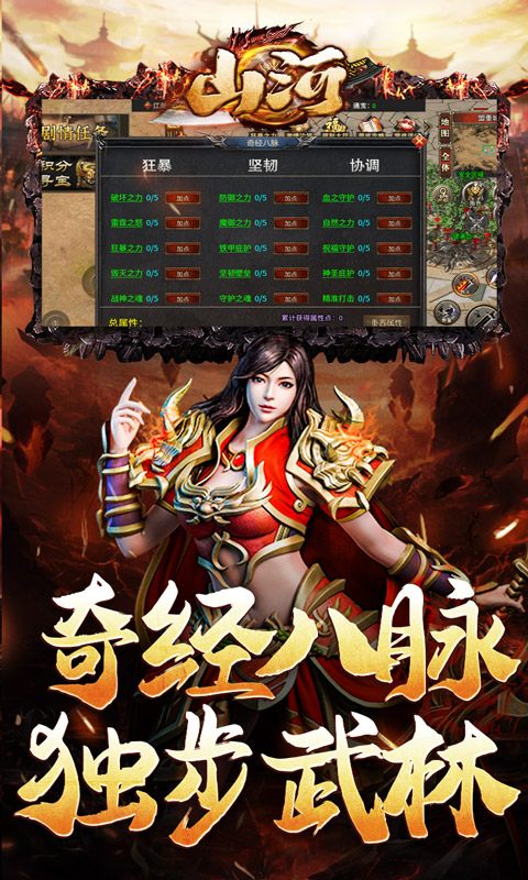 山河(修罗江湖无限刀)是一款全新传奇手游!独特武侠剧情引导,代入感十足!完成剧情任务更有属性点强化奇经八脉!无合区礼包,无日充礼包,散人也可追梦!积分夺宝刷怪免费获得积分,超多材料货币等你来抽!